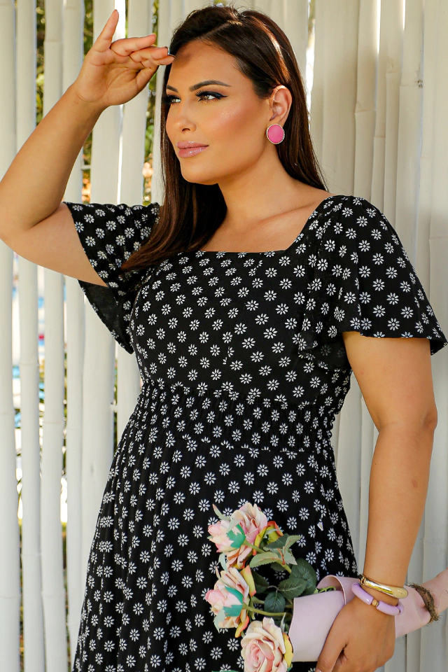 Pra quem gosta do estilo romântico, o vestido Mari é a escolha certa. Produzido no viscose, o busto com recortes, vem com tecido duplo, dando estrutura e um ótimo acabamento. As mangas com corte godê dão leveza e movimento, a cintura marcada por lastex, garantem mais conforto, assim como as duas saias, cortada no godê, uma combinação perfeita com a estampa que é toda delicada Sinta-se um menina mulher e desfrute desse vestido para ir a igreja ou à eventos informais..